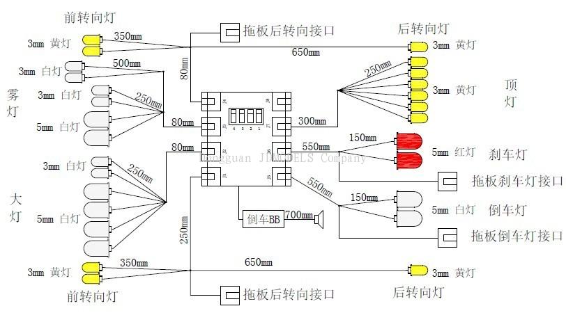 2, down lights, brake lights when the vehicle is reversing reversing lamp bright, bright lights killed when the vehicle is braking. If the vehicle traveling direction and the lights opposite directions, find the control board DIP switch "2" to complete the toggle switch forward and reverse settings.